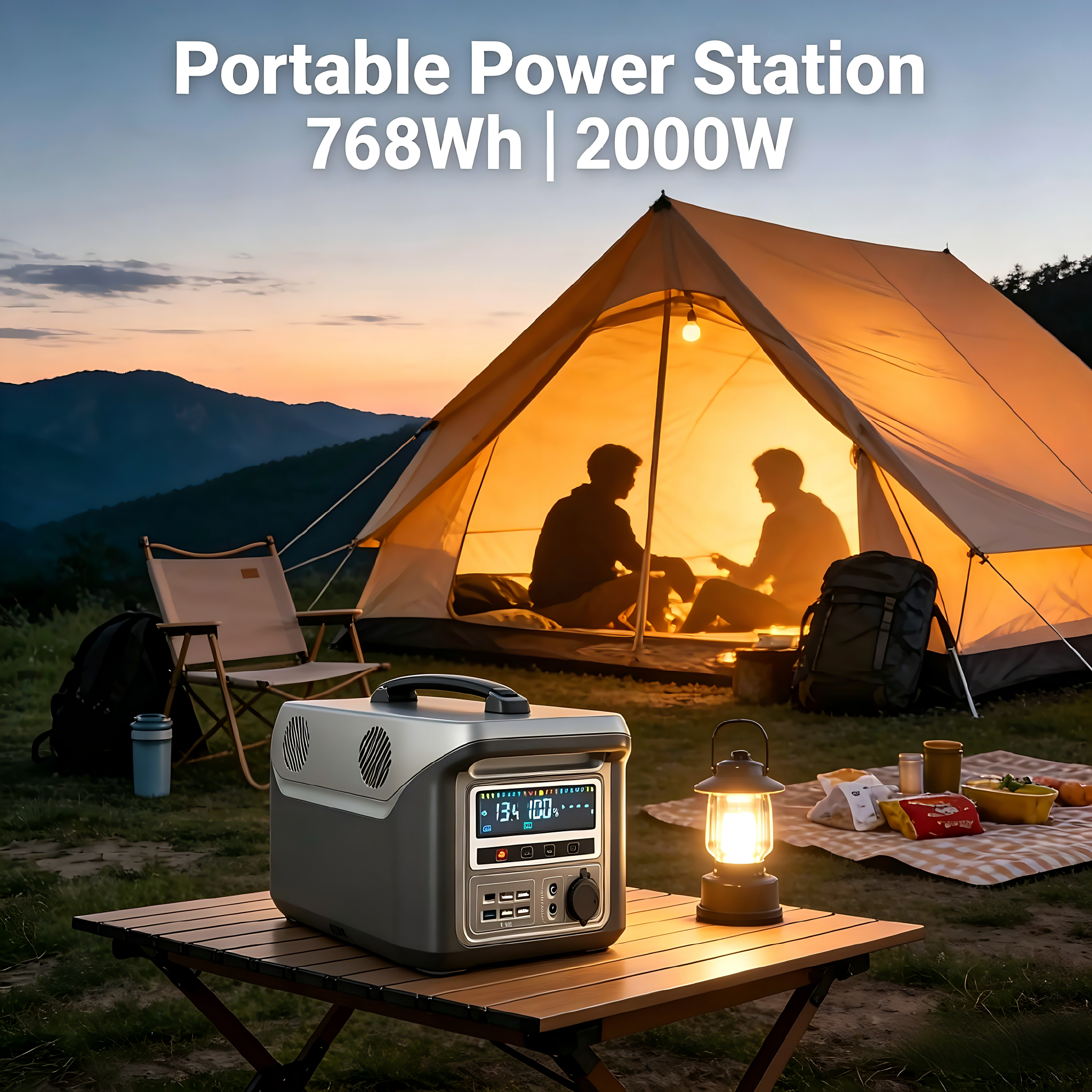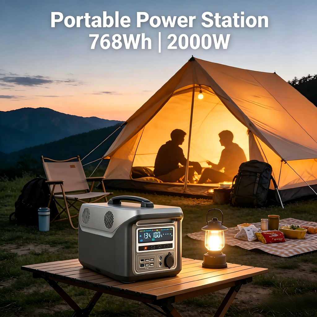 Portable Power Station 768WH Up To 2000W Output for Home Backup & Outdoor